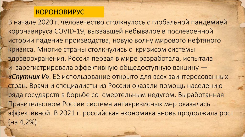 КОРОНОВИРУСВ начале 2020 г. человечество столкнулось с глобальной пандемией