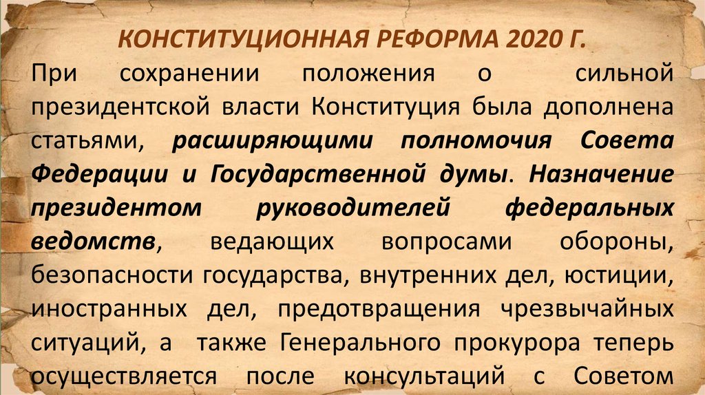 КОНСТИТУЦИОННАЯ РЕФОРМА 2020 Г.При сохранении положения о