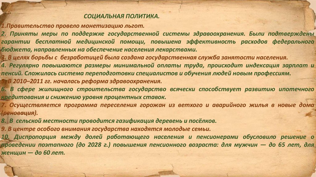 СОЦИАЛЬНАЯ ПОЛИТИКА.1.Правительство провело монетизацию льгот.