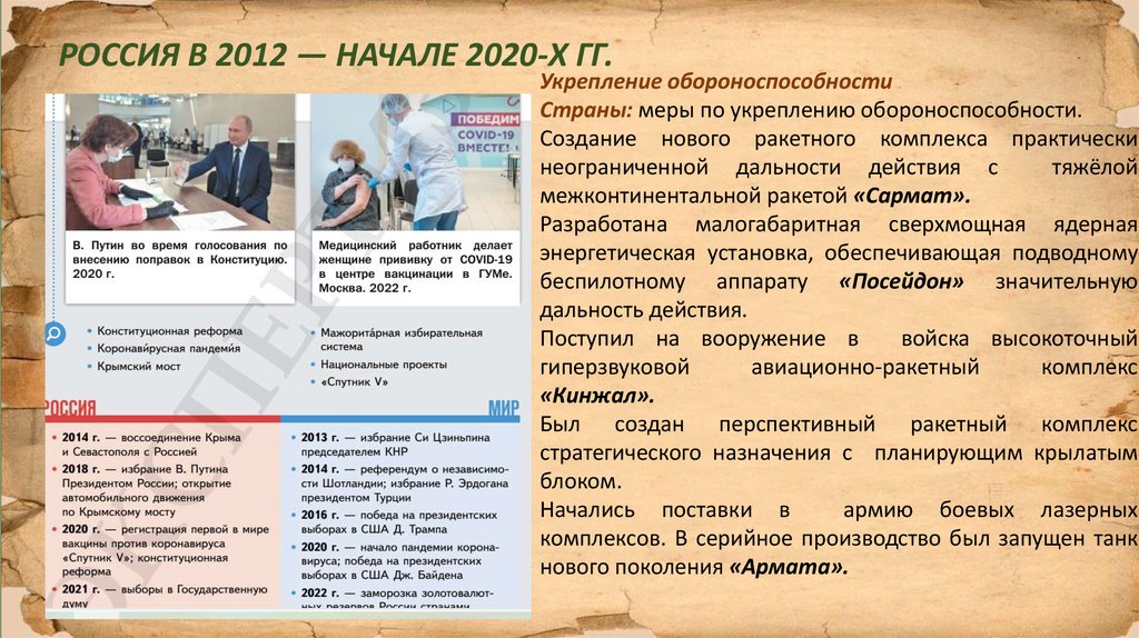 РОССИЯ В 2012 — НАЧАЛЕ 2020-Х ГГ.Укрепление обороноспособности