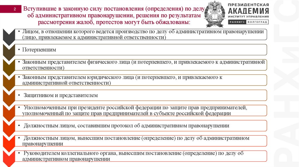 • Лицом, в отношении которого ведется производство по делу об административном правонарушении