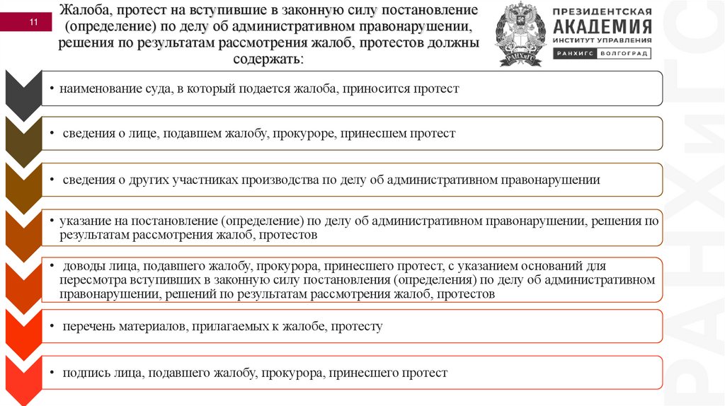 • наименование лица, подавшего жалобу, прокурора, принесшего протест