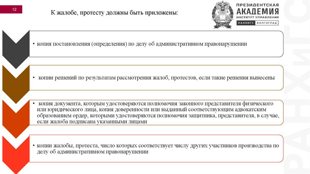 • копии жалобы, протеста, число которых соответствует числу других участников производства по