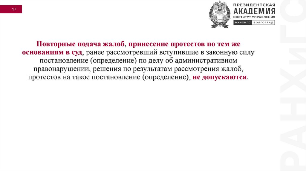 жалоб, протестов со ссылкой на статьи КоАП РФ и (или) закона субъекта Российской Федерации об