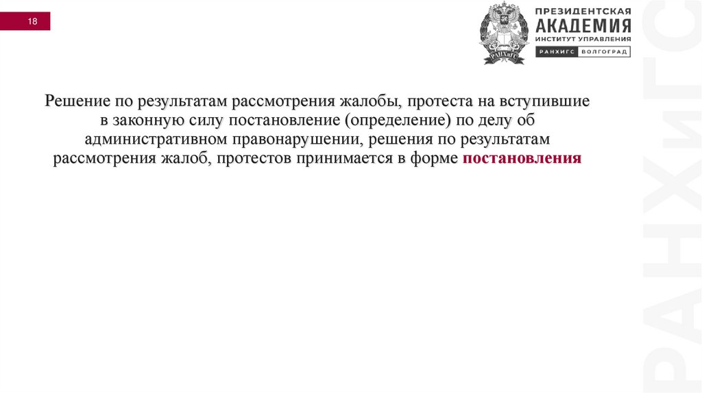 18Решение по результатам рассмотрения жалобы, протеста на вступившие