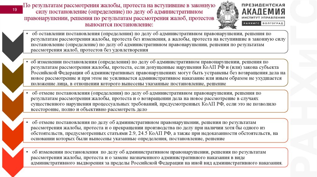 19По результатам рассмотрения жалобы, протеста на вступившие в законную