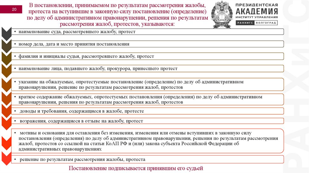 • фамилия и инициалы судьи, рассмотревшего жалобу, протест