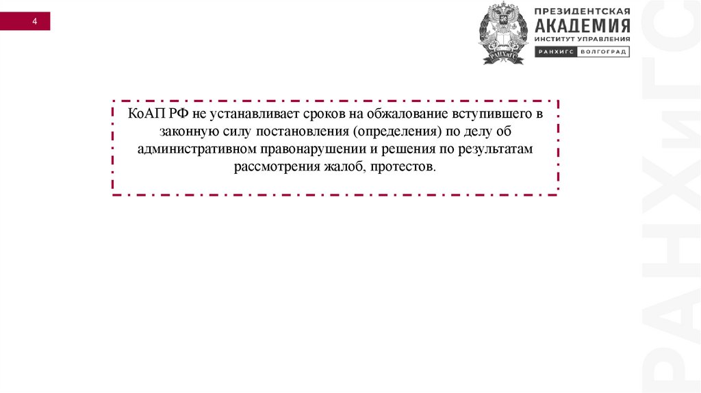 4КоАП РФ не устанавливает сроков на обжалование вступившего в