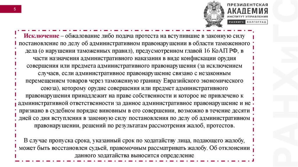 5Исключение – обжалование либо подача протеста на вступившие в законную силу