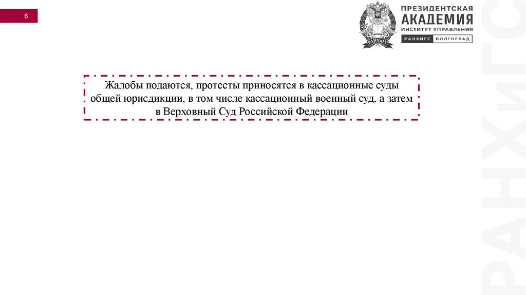 6Жалобы подаются, протесты приносятся в кассационные суды