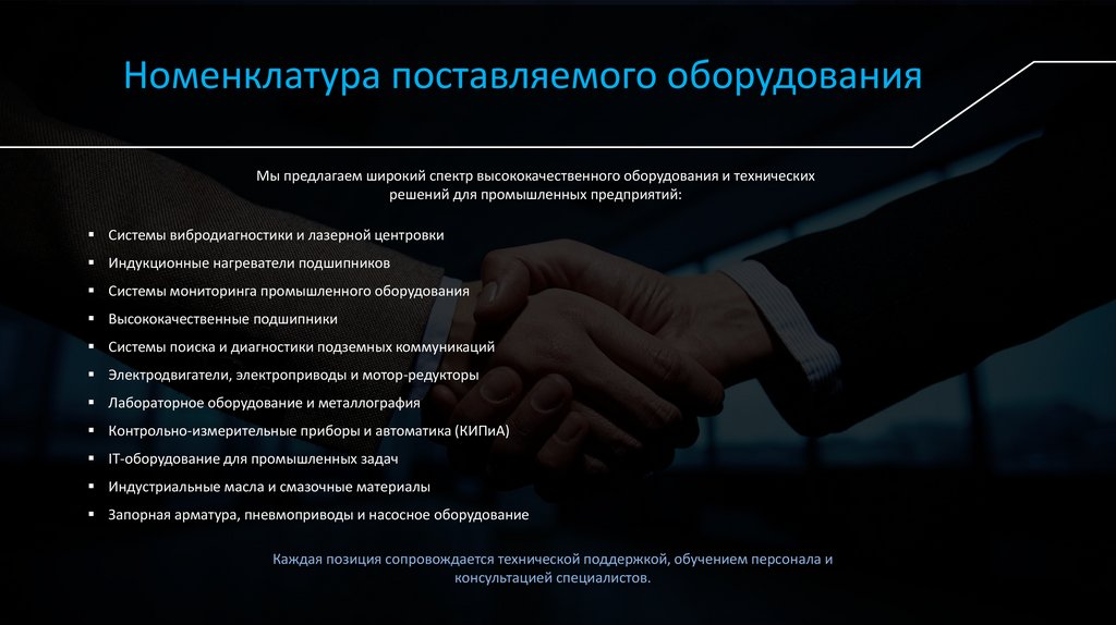 Номенклатура поставляемого оборудованияМы предлагаем широкий спектр высококачественного оборудования и технических