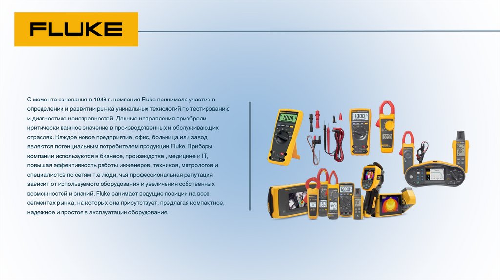 возможностей и знаний. Fluke занимает ведущие позиции на всех