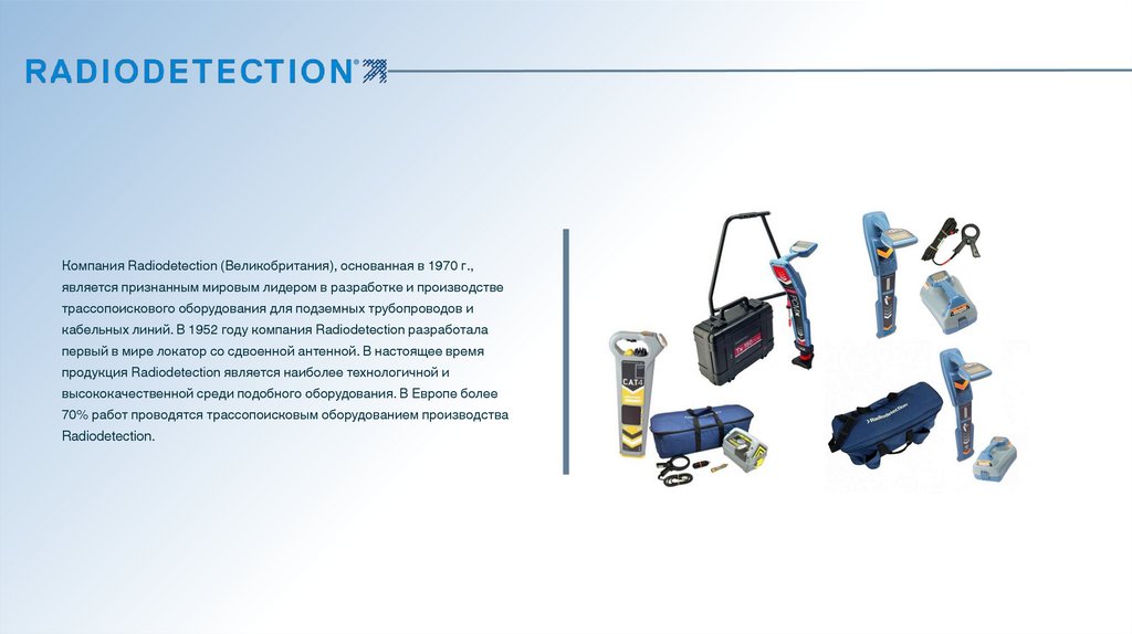 Компания Radiodetection (Великобритания), основанная в 1970 г.,является признанным мировым лидером в разработке и производстве