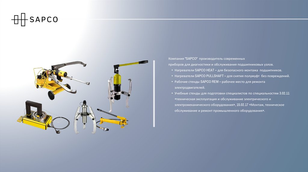 Компания "SAPCO" производитель современныхприборов для диагностики и обслуживания подшипниковых узлов.