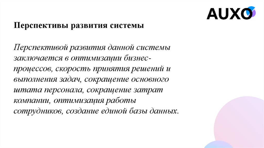 Ожидаемые выгоды от создания АС: оптимизация бизнес-процессов, скорость