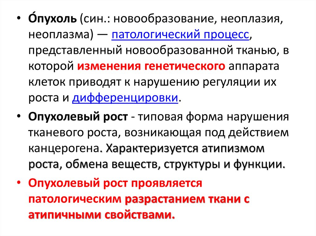 • Опухолевый рост - типовая форма нарушения