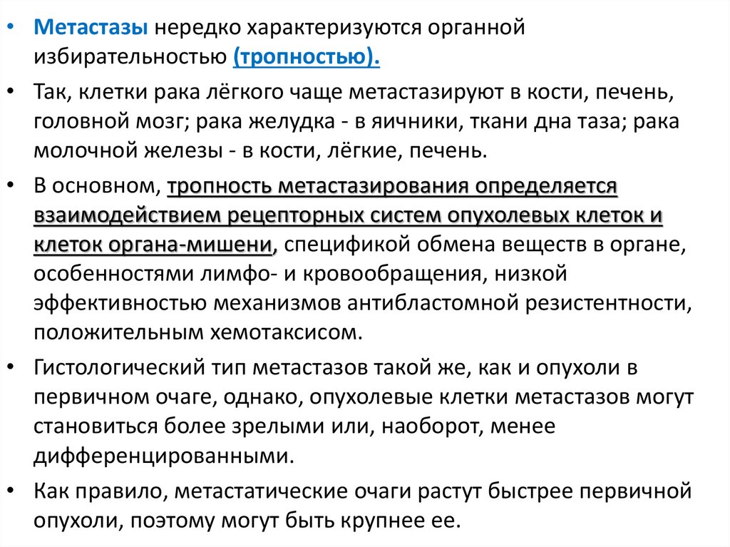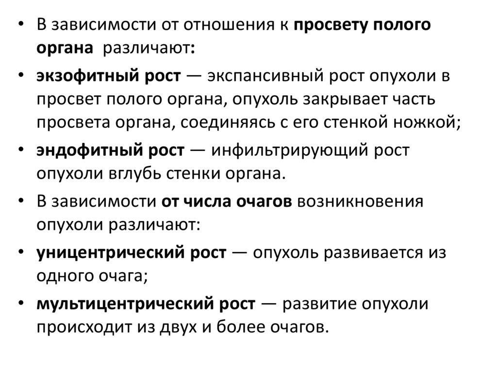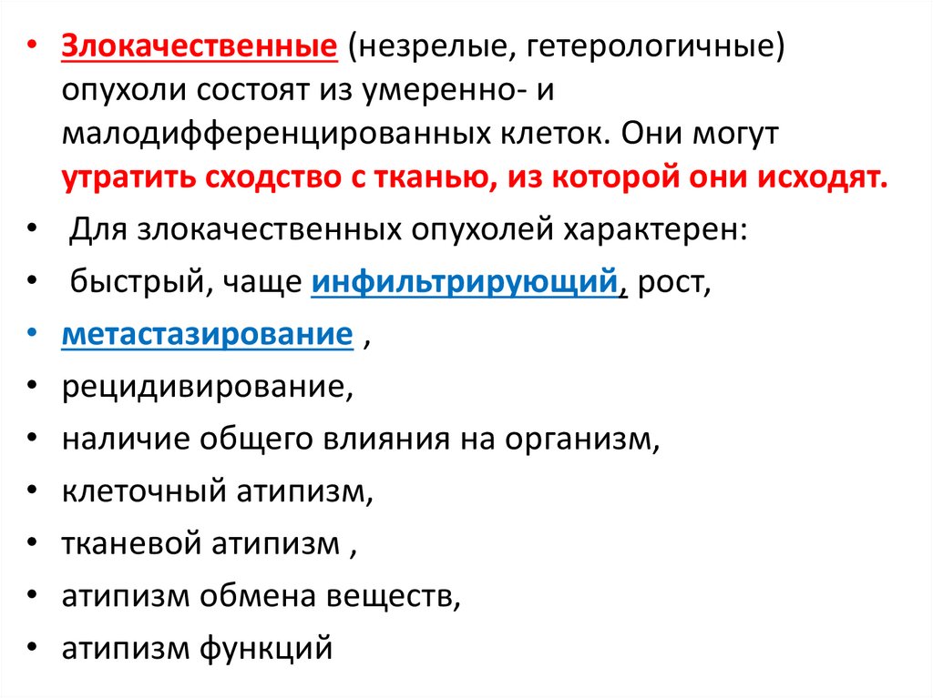 • Для злокачественных опухолей характерен: