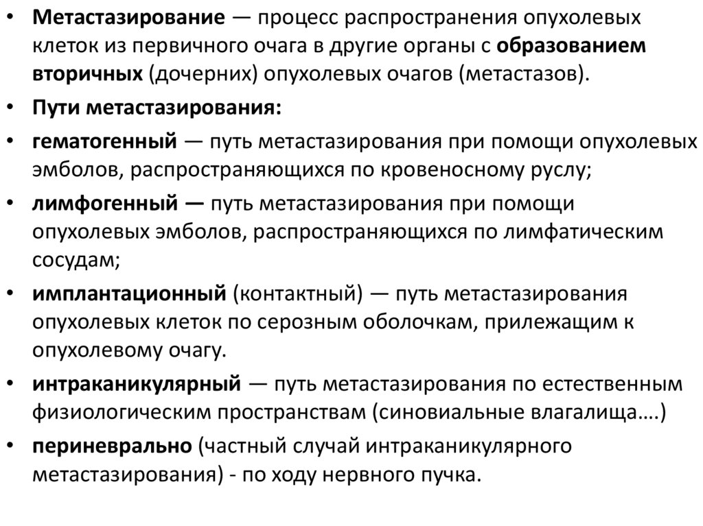 • метастазирование ,