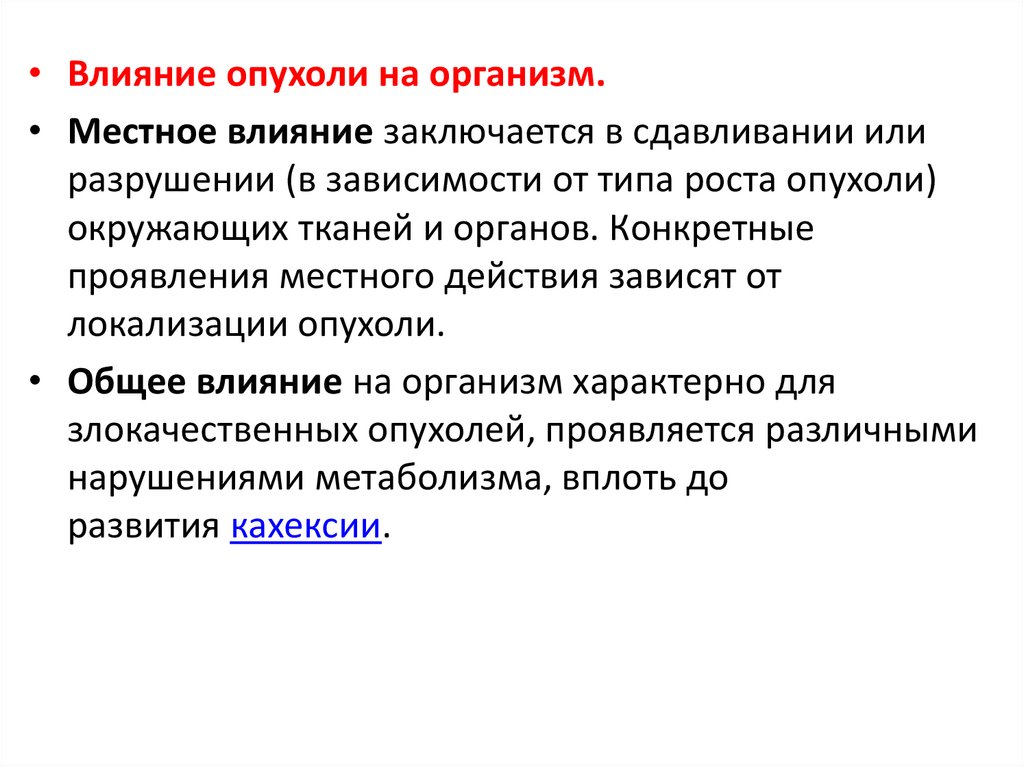 • Опухолевый рост проявляется