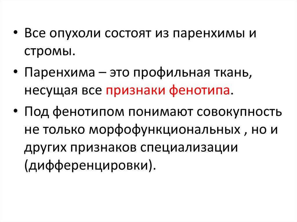 • Паренхима – это профильная ткань,