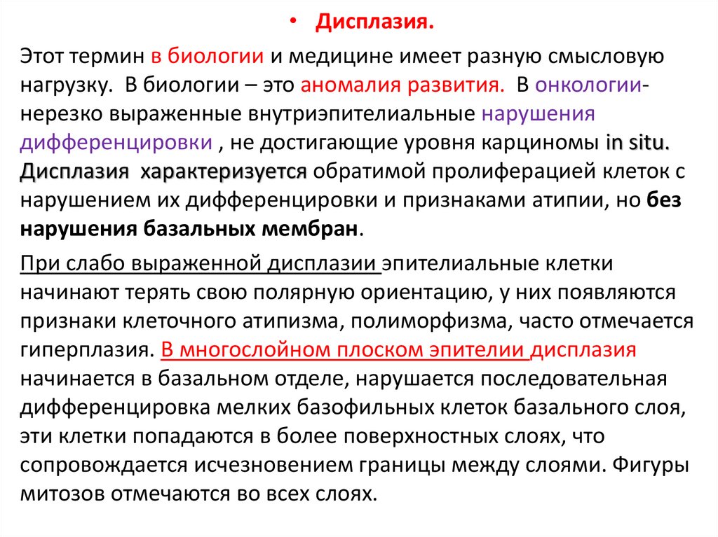• Морфологически проявляется в полиморфизме клеток
