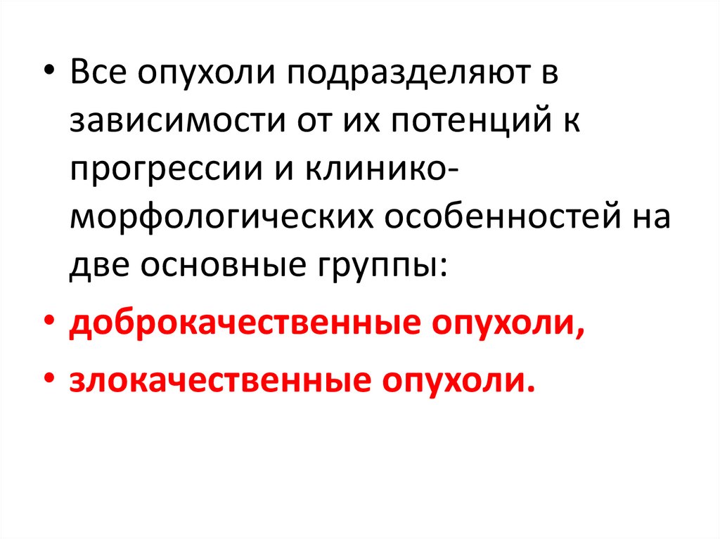 • Все опухоли подразделяют взависимости от их потенций к