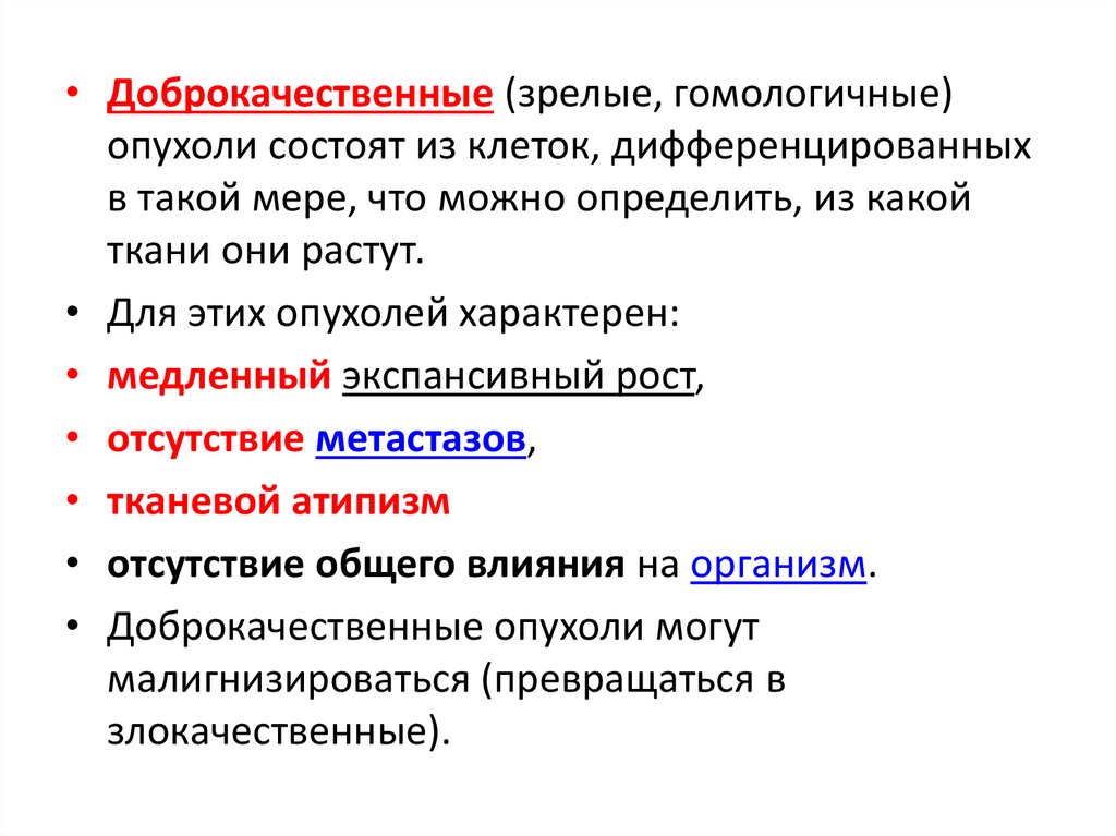 • Доброкачественные опухоли могут