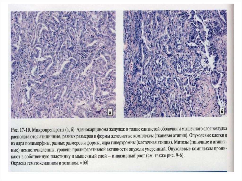 строение слизистой аденокарциномы. В про-светах
