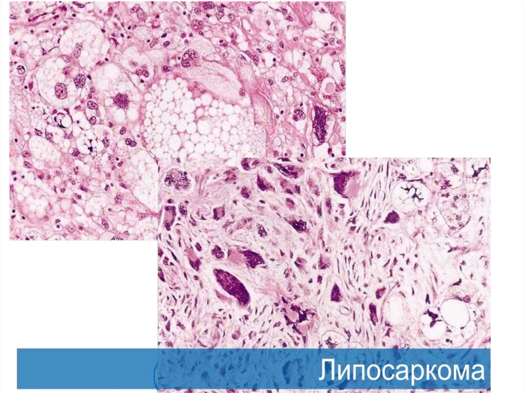 • У мужчины 55 лет в области бедра обнаруженподвижный опухолевый узел, мягкоэластической консистенции, размерами 5*4 см. На операции при удалении опухоли обнаружено, что