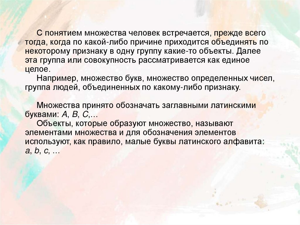 С понятием множества человек встречается, прежде всеготогда, когда по какой-либо причине приходится объединять по