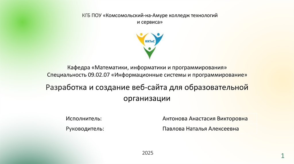 Разработка и создание веб-сайта для образовательной