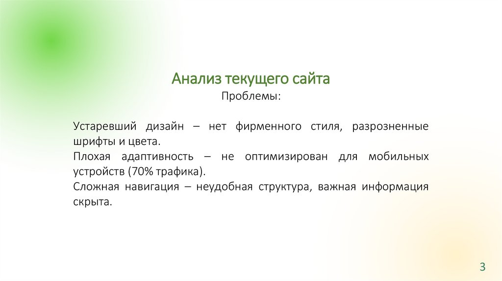 Анализ текущего сайтаПроблемы: