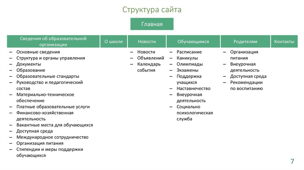 Структура сайтаГлавная