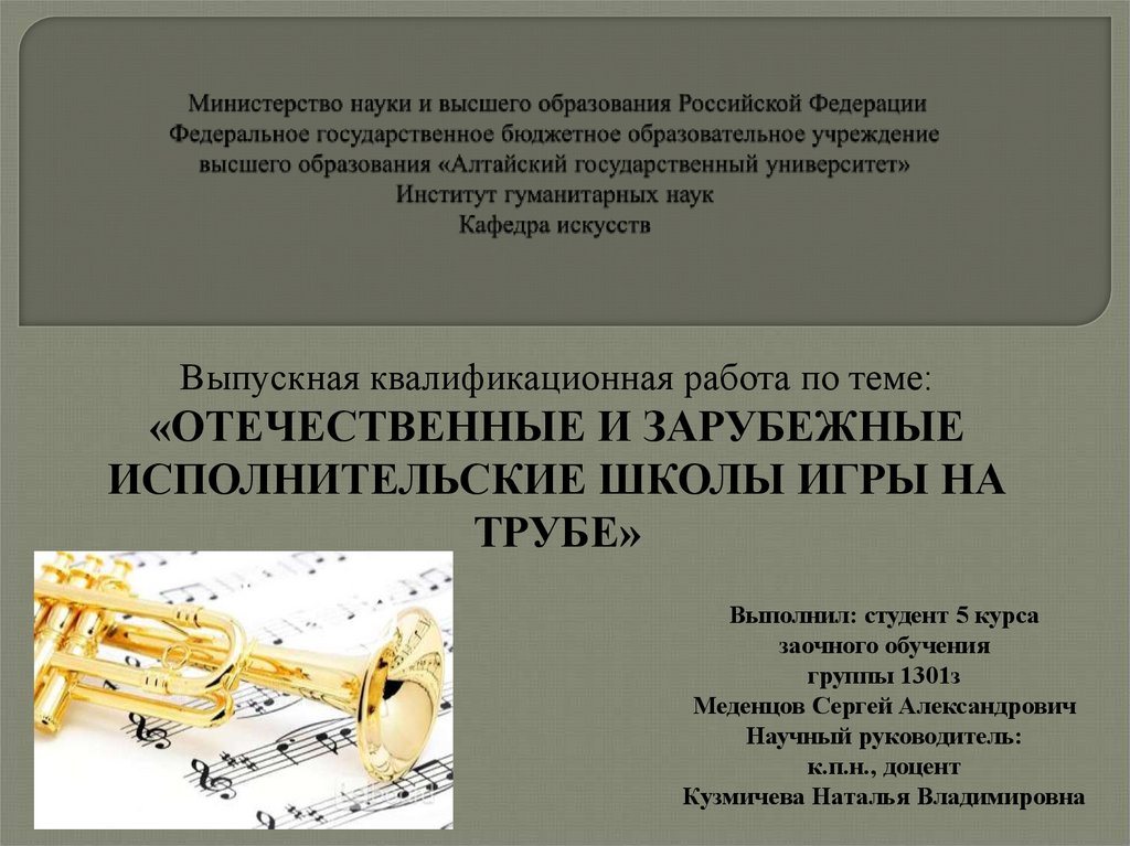 Отечественные и зарубежные исполнительские школы игры на трубе