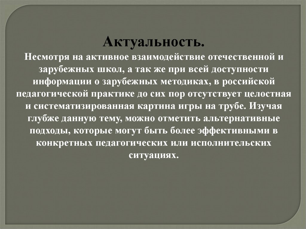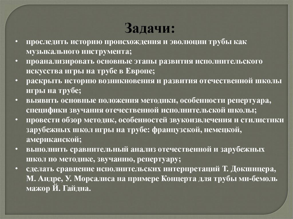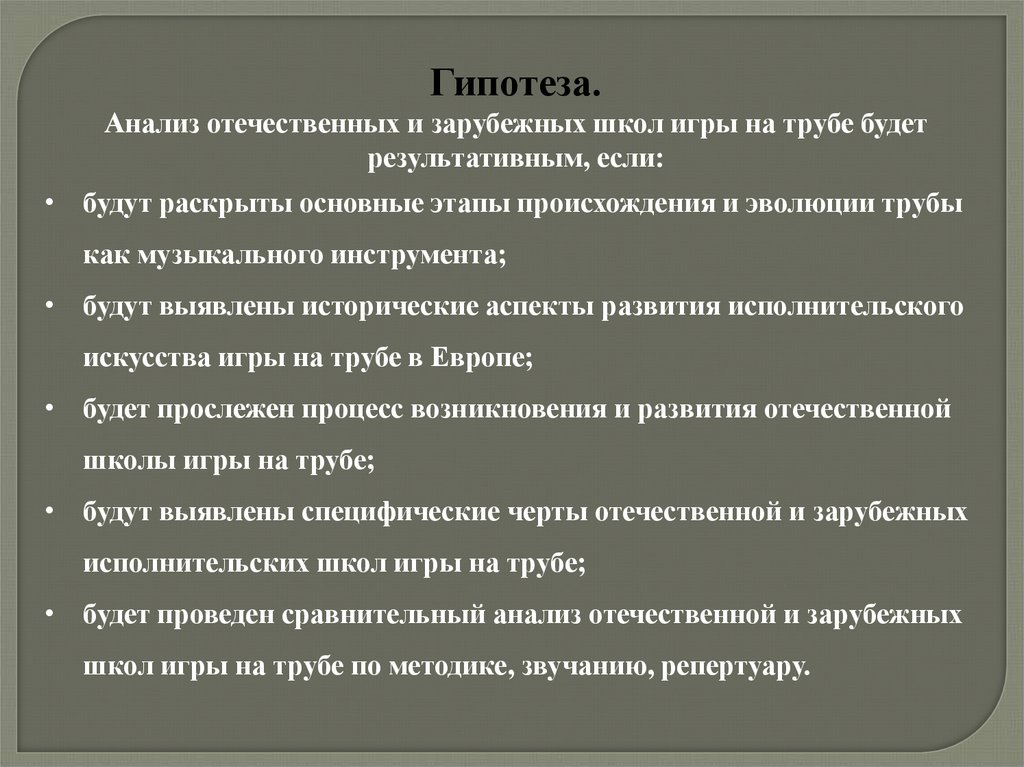 Гипотеза.Анализ отечественных и зарубежных школ игры на трубе будет