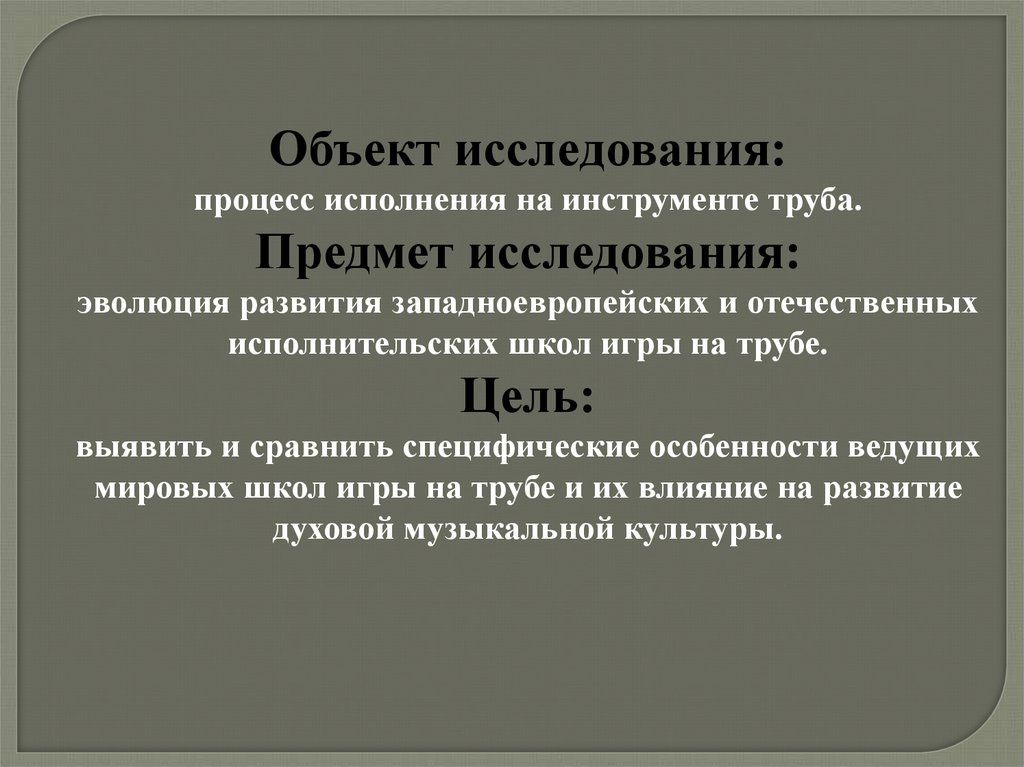 Объект исследования:процесс исполнения на инструменте труба.