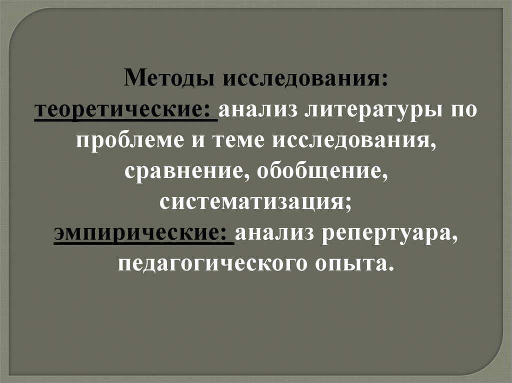 Методы исследования:теоретические: анализ литературы по