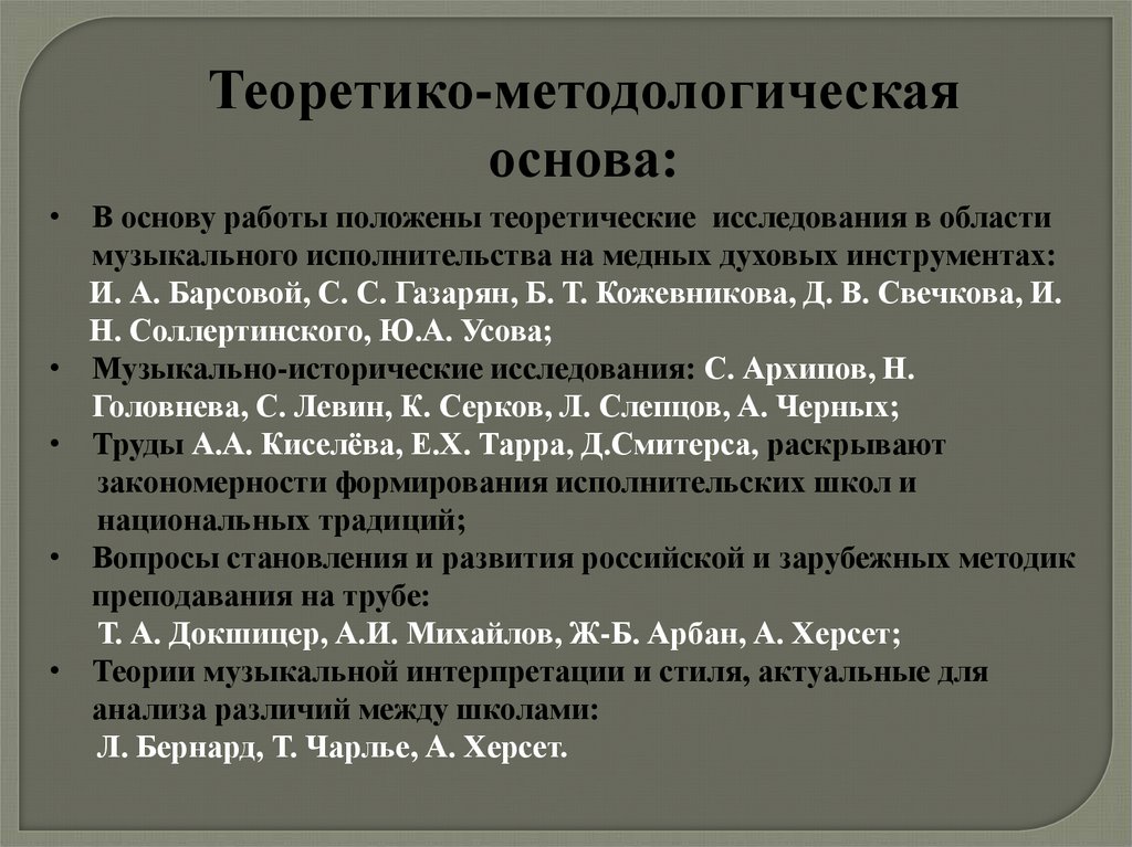• В основу работы положены теоретические исследования в области