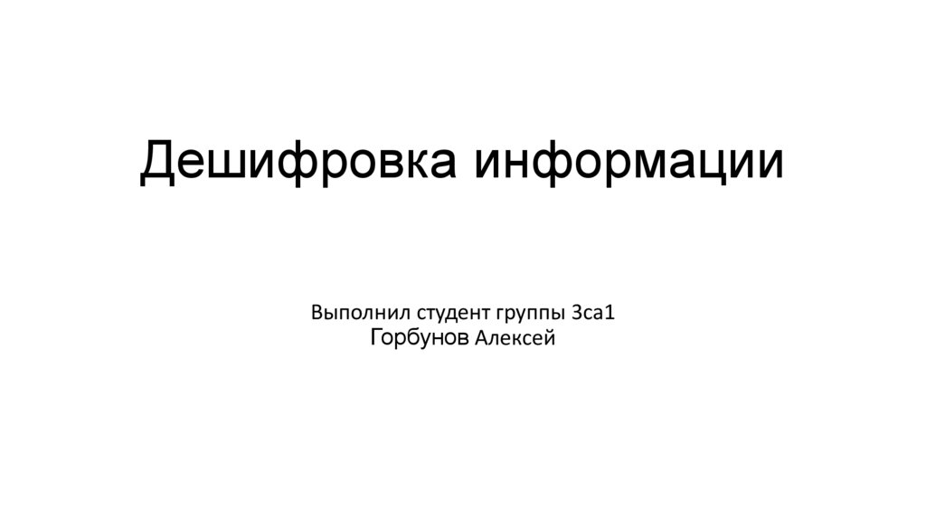 Что такое дешифровка?• Процесс преобразования зашифрованных данных (шифротекста) в исходный вид (открытый