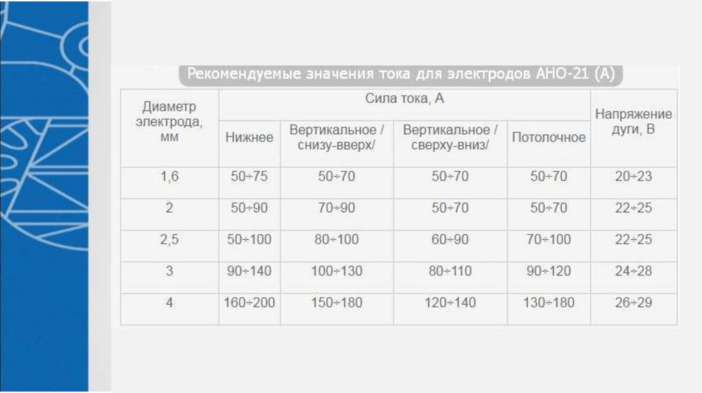 9. Выбор типа и марки электрода.