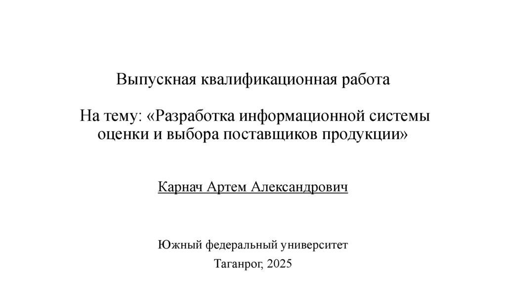 1. Выпускная квалификационная работа На тему: «Разработка информационной системы оценки и выбора поставщиков продукции»