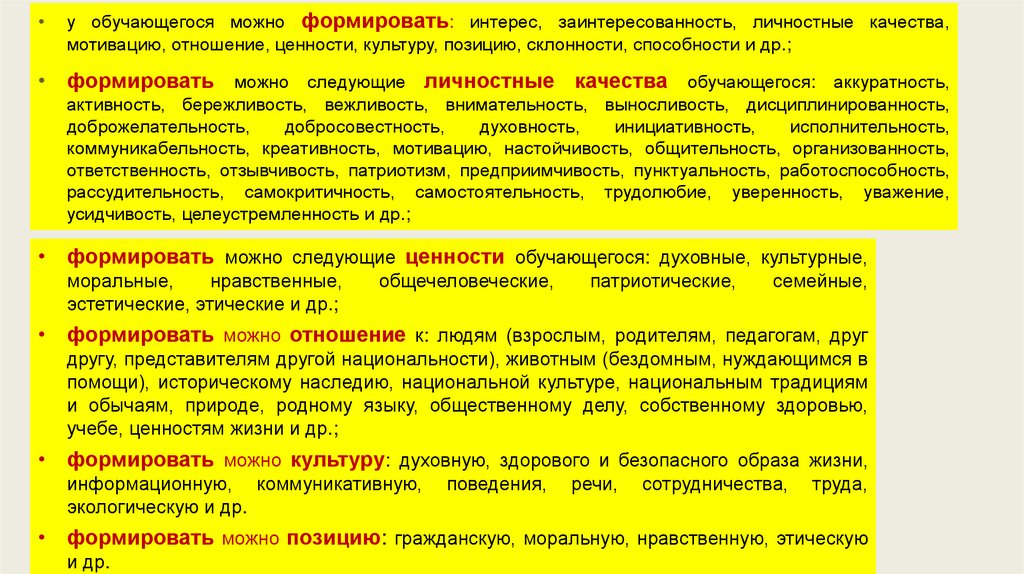 конкретизированные образовательные цели и фиксируемые, диагностируемые и
