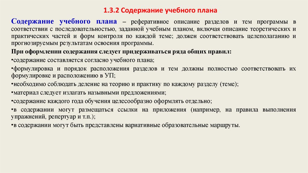 1.3.2 Содержание учебного планаСодержание учебного плана – реферативное описание разделов и тем программы в