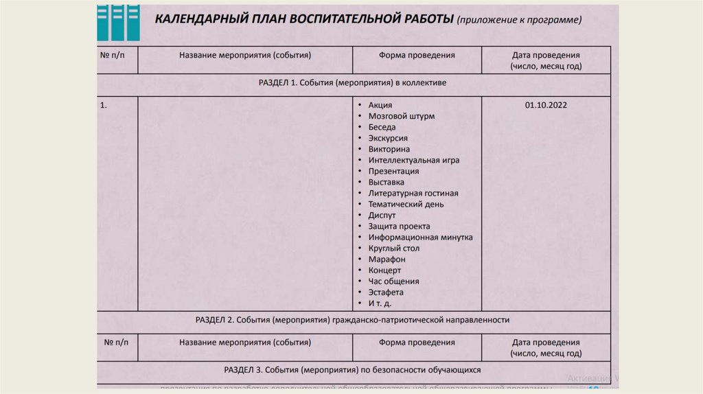 воспитания, календарного плана воспитательной работы, форм аттестации.