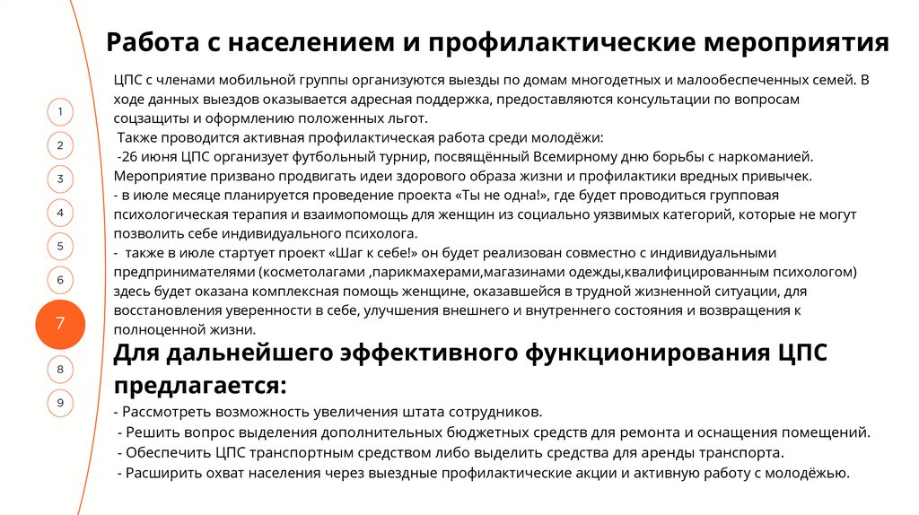 - Расширить охват населения через выездные профилактические акции и активную работу с молодёжью.