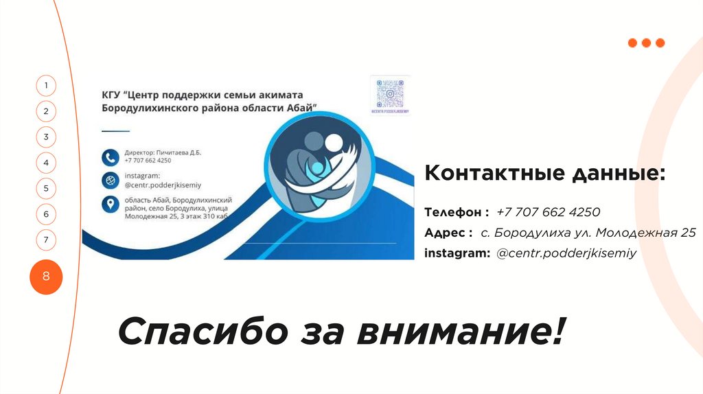 «АБАЙ ОБЛЫСЫ БОРОДУЛИХА АУДАНЫ ӘКІМДІГІНІҢОТБАСЫН ҚОЛДАУ ОРТАЛЫҒЫ» КММ ЖҰМЫСЫ