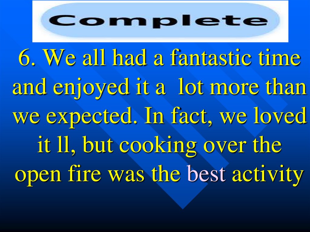 6. We all had a fantastic timeand enjoyed it a lot more than