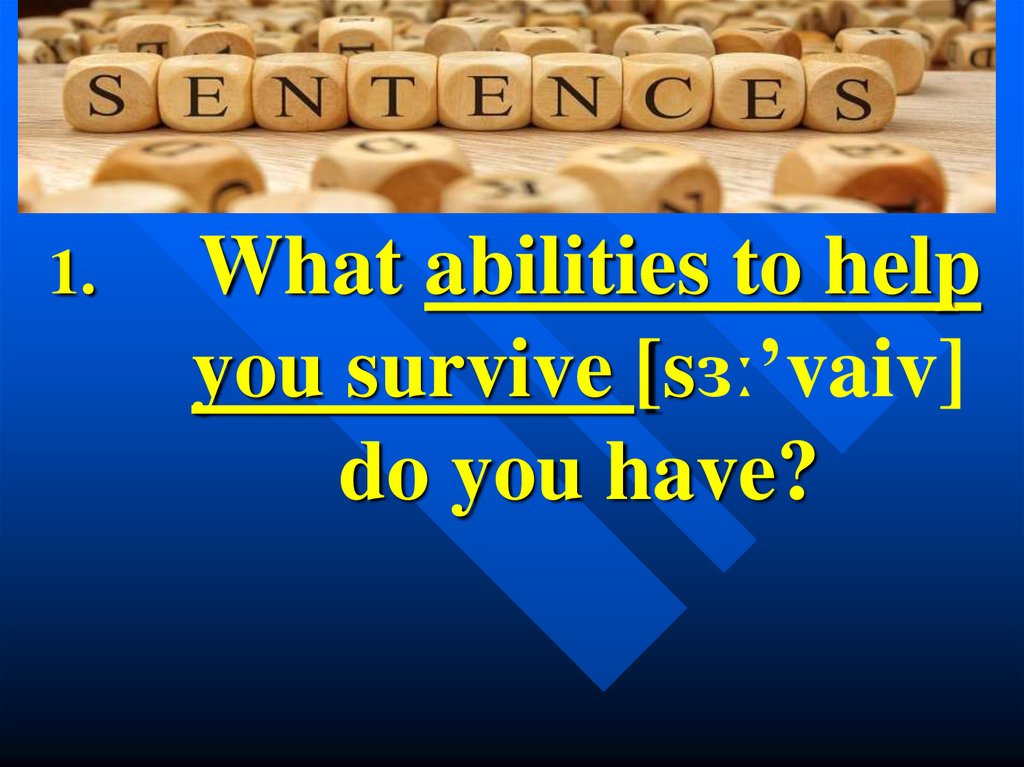 0. How long do you thinkyou could survive [sɜː’vaiv]