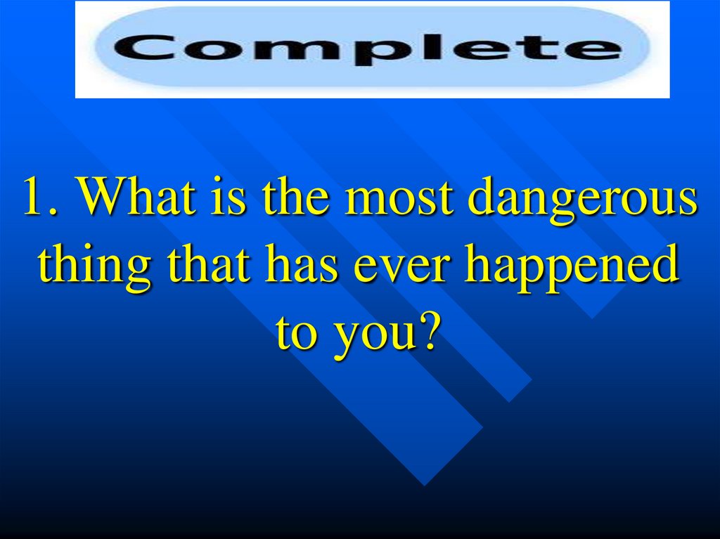 184. 1. Какая самая опасная вещь, которая с тобой когда-либо случалась?