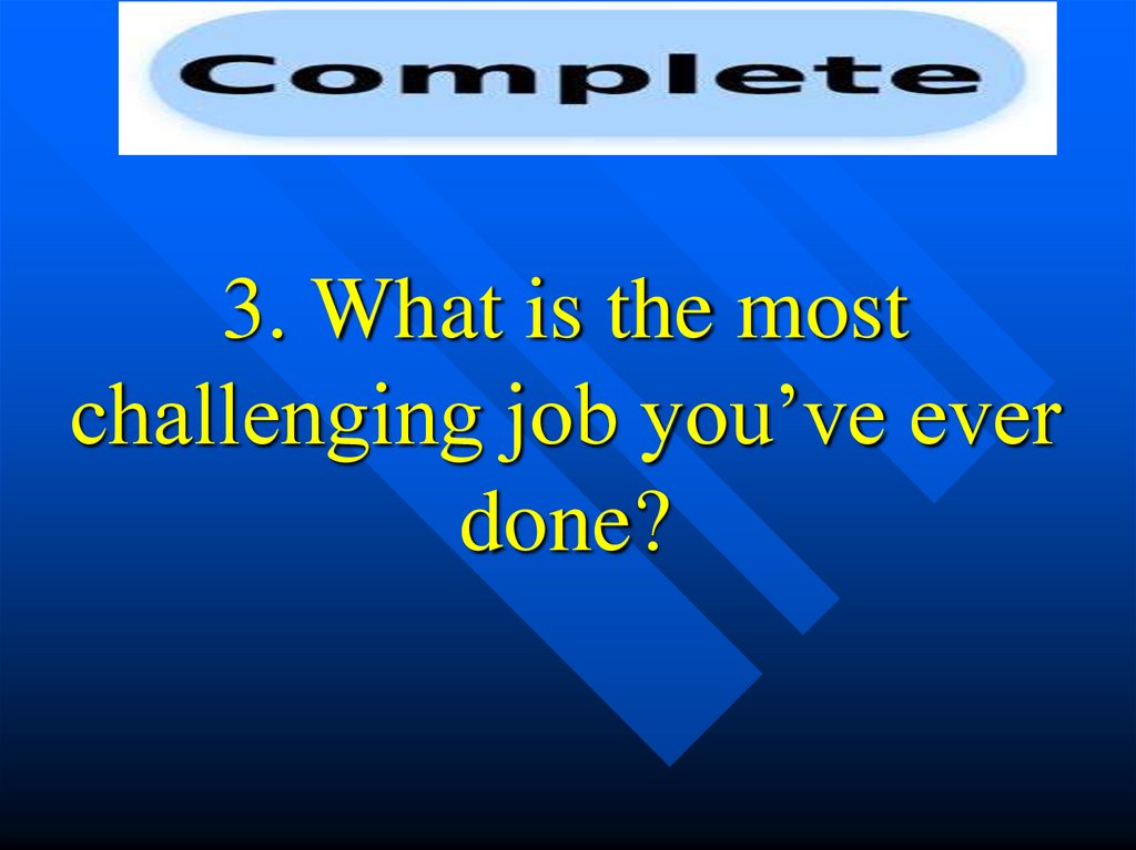 190. 3. Какая самая сложная работа из тех, которую Вы когда-либо выполняли?